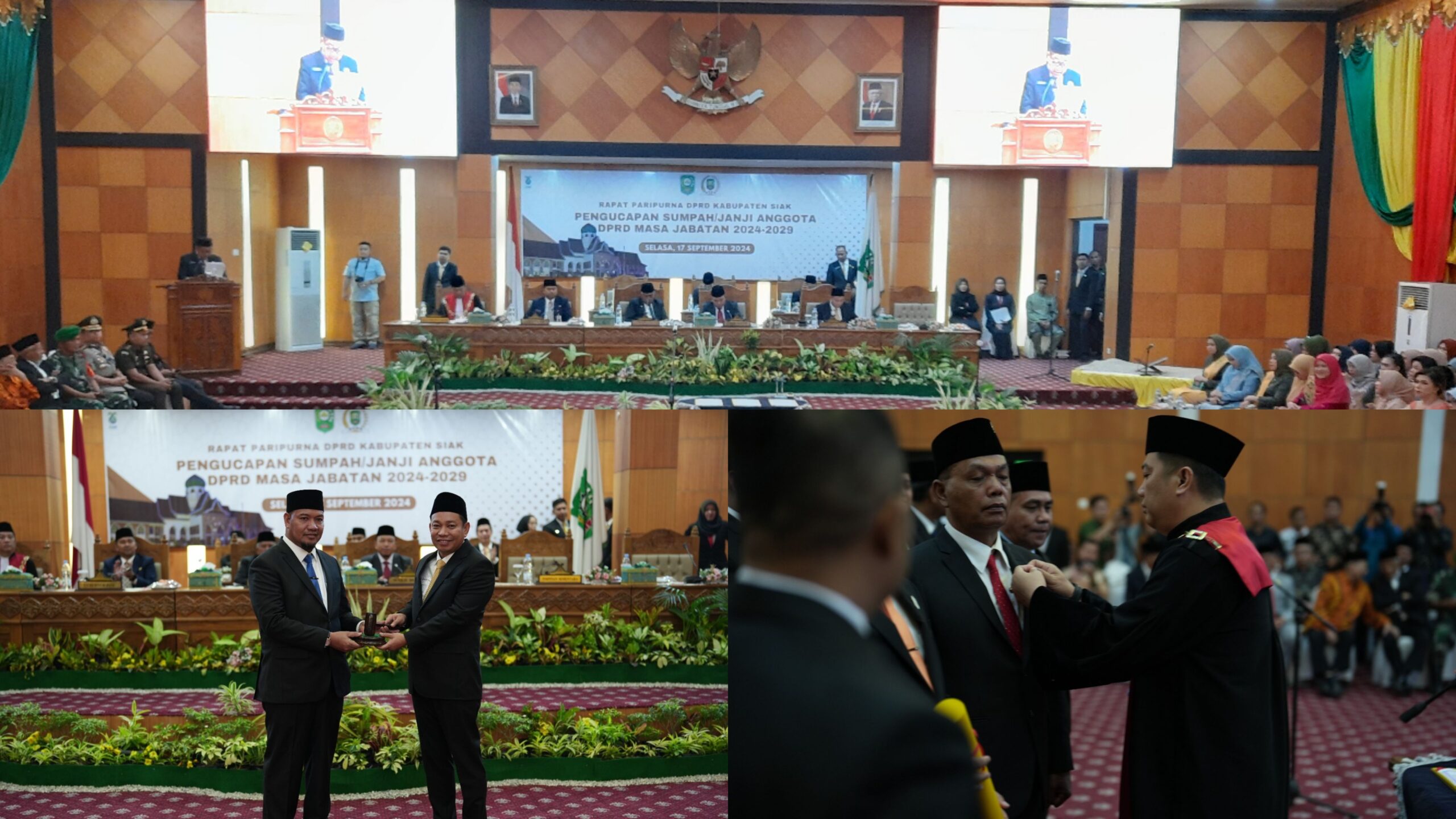 Pelantikan dipimpin oleh Ketua Pengadilan Negeri Kabupaten Siak Muhammad Hibrian, dalam pengucapan sumpah janji sebagai anggota DPRD Kabupaten Siak.
