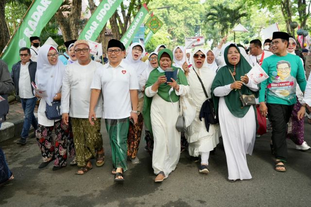 JAWA TIMUR, PUBLIKNEWS.COM – Panglima Santri Indonesia yang juga Wakil Ketua DPR RI Abdul Muhaimin Iskandar (Gus Muhaimin) melepas jalan sehat bertajuk Mlaku Sarungan Bareng dalam rangka Hari Santri Nasional (HSN) di Alun-alun Kota Sidoarjo, Kabupaten Sidoarjo, Jawa Timur, Minggu (23/10/2022). Acara diikuti puluhan ribu santri dari Sidoarjo dan sekitarnya.