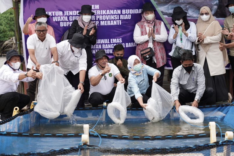 Dalam kesempatan ini Pemerintah Daerah berterima kasih dengan adanya intervensi dari Pemerintah Pusat dan Pemerintah Provinsi untuk pengembangan perikanan budidaya di Kepulauan Meranti. Pada tahun 2021 Kementerian Kelautan dan Perikanan, Direktorat Jenderal Perikanan Budidaya melalui Direktorat Perbenihan memberikan bantuan KJA HDPE sebanyak 25 unit atau senilai Rp. 4.190.800.000,-dan melalui BPBL Batam bantuan benih Kakap sebanyak 243.400 ekor.