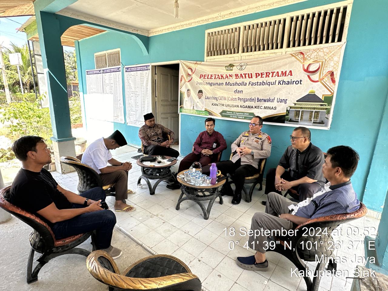 SIAK, PUBLIKNEWS.COM – Kapolsek Minas Kompol Wan Mantazakka SH MH beserta sejumlah personilnya melakukan kegiatan Cooling System Silahturahmi Kamtibmas Dalka Pilkada serentak Tahun 2024 di Kantor Urusan Agama (KUA) Kecamatan Minas, Kabupaten Siak, Riau, Rabu (18/09/202) pagi.