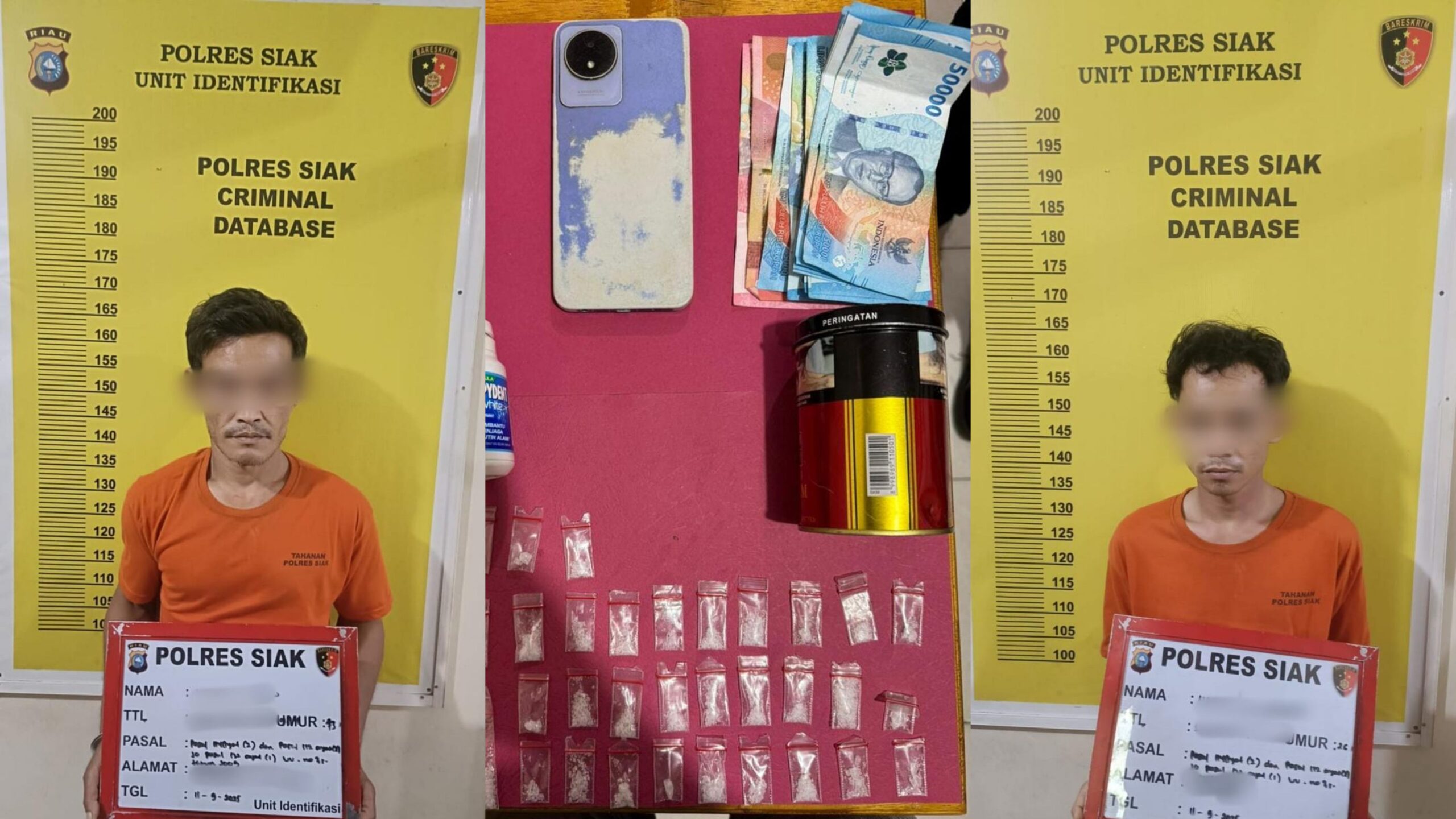 Kasat Narkoba Polres Siak, AKP Tony, mewakili Kapolres Siak AKBP Eka Ariandy Putra, S.H., S.I.K., M.Si., menjelaskan bahwa saat digeledah, selain 39 paket sabu, polisi juga menyita uang tunai pecahan Rp50 ribu dan Rp100 ribu, dua unit handphone, serta satu sepeda motor Honda Vario tanpa nomor polisi.