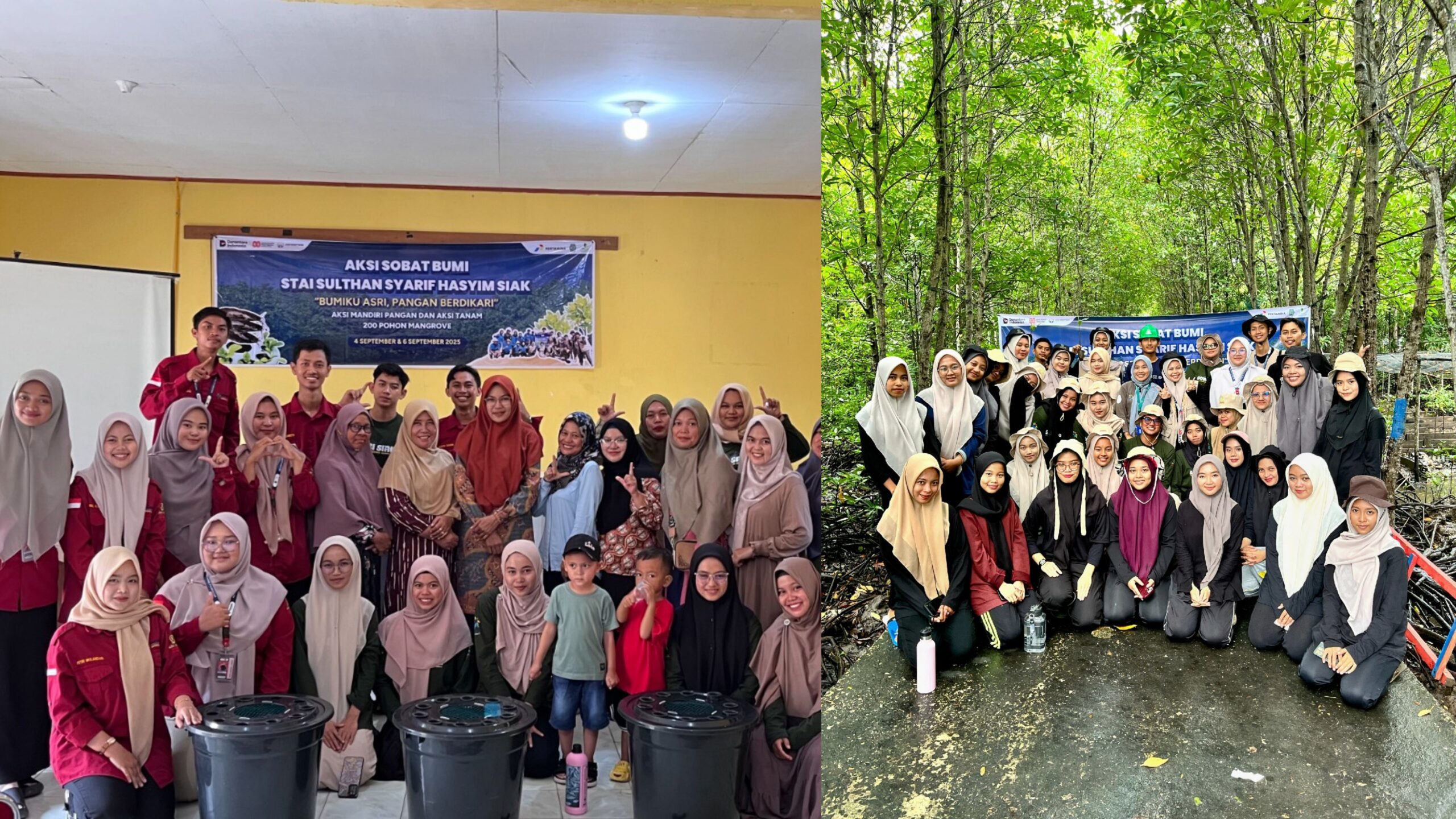 Kegiatan ini digelar oleh Sobat Bumi STAI Susha Siak yang menanam 200 bibit mangrove di Mangrove Education Park Sungai Pakning pada Kamis (4/9/25).