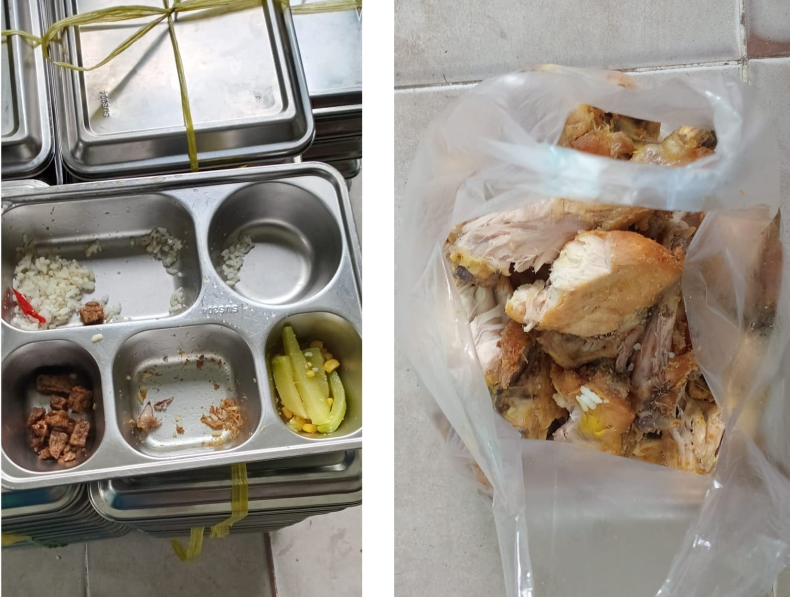 Hal itu terpantau pada Senin 13/4/2026 di SDN 05 Jayapura. Tumpukan piring ompreng stainless atau fast food tray terdapat sisa nasi dan sayur, sedangkan lauknya tampak sudah dikumpulkan di dalam plastik.