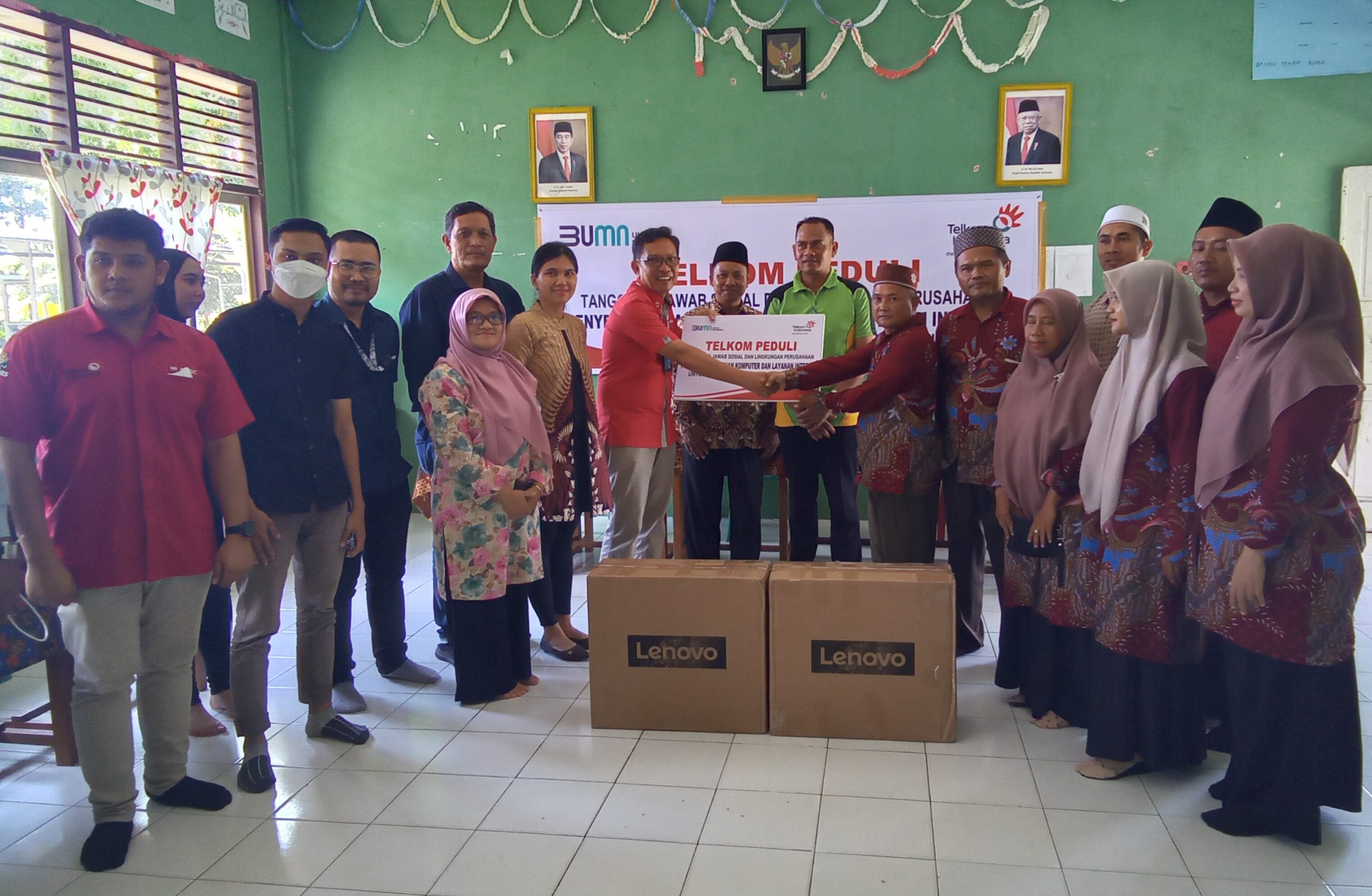 SIAK, PUBLIKNEWS.COM – Betapa terkejutnya Kepala Sekolah Madarasah Tsanawiyah (MTs) Al-Muhajirin Kampung Bungaraya, Kecamatan Bungaraya, Kabupaten Siak, Riau ini. Pasalnya, sekolah yang ia pimpin mulai Januari 2022 mendapat bantuan Corporate Social Responcibility (CSR) berupa dua unit Komputer merk Lenovo 21,5 inc lengkap dengan layanan internet Indihome dari Telkom Indonesia.