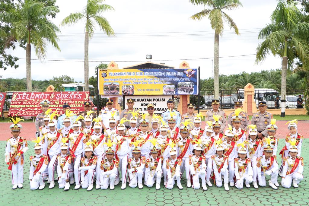 SIAK, PUBLIKNEWS.COM – Kepolisian Resor (Polres) Siak Polda Riau Lantik dan berikan Penghargaan kepada Polisi Cilik Angkatan IV Polres Siak, Senin (30/1/2023) pagi di halaman Mapolres Siak.