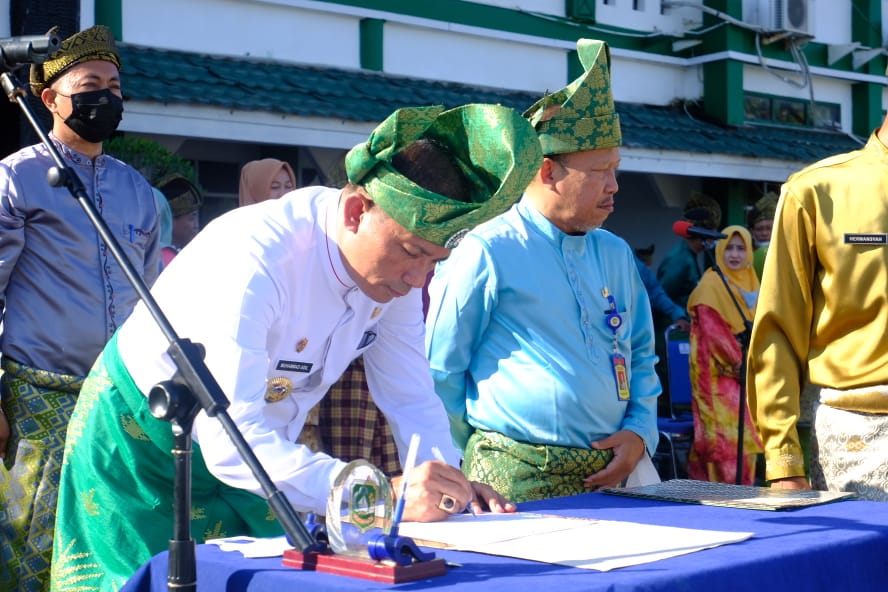 “Saudara-saudara para hadirin yang berbahagia, Dengan telah ditetapkannya APBD tahun anggaran 2022 dan telah diterbitkannya DPA-SKPD maka dengan ini Pemerintah Kabupaten Kepulauan Meranti sudah dapat melaksanakan kegiatan yang mendukung visi dan misi Bupati dan Wakil Bupati untuk tahun ini, dan menggerakkan 7 Program Strategis Bupati,” tambahnya.