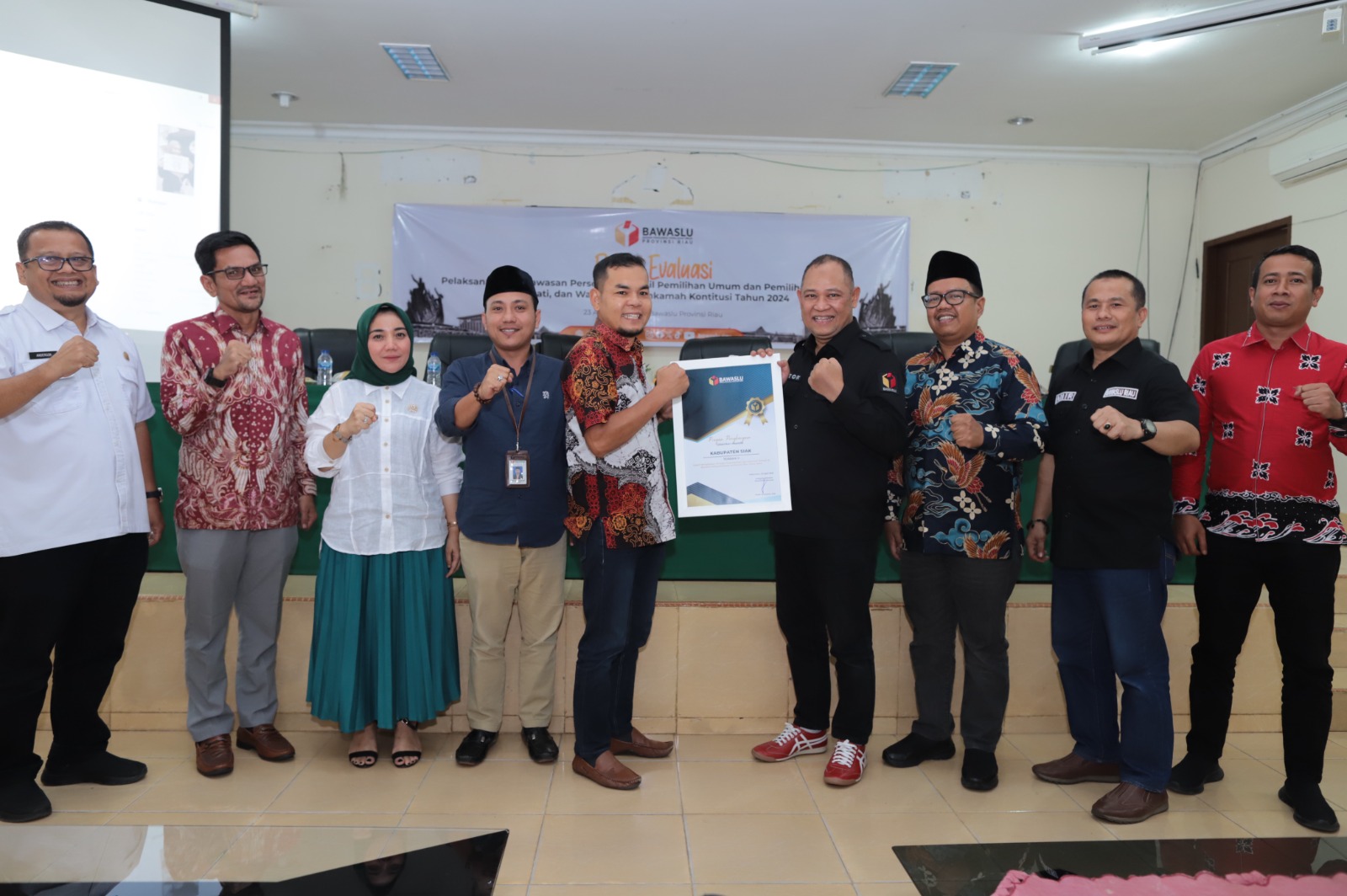 Penghargaan ini diserahkan langsung oleh Anggota Bawaslu RI, Totok Hariyono yang berkesempatan hadir di Pekanbaru dalam acara Rapat Evaluasi dalam Acara Rapat Evaluasi pelaksanaan Pengawasan Perselisihan Hasil Pemilihan Umum dan Pemilihan Gubernur, Bupati, dan Walikota di Mahkamah Kontitusi Tahun 2024 yang digelar Bawaslu Provinsi Riau di Aula Bawaslu Riau.