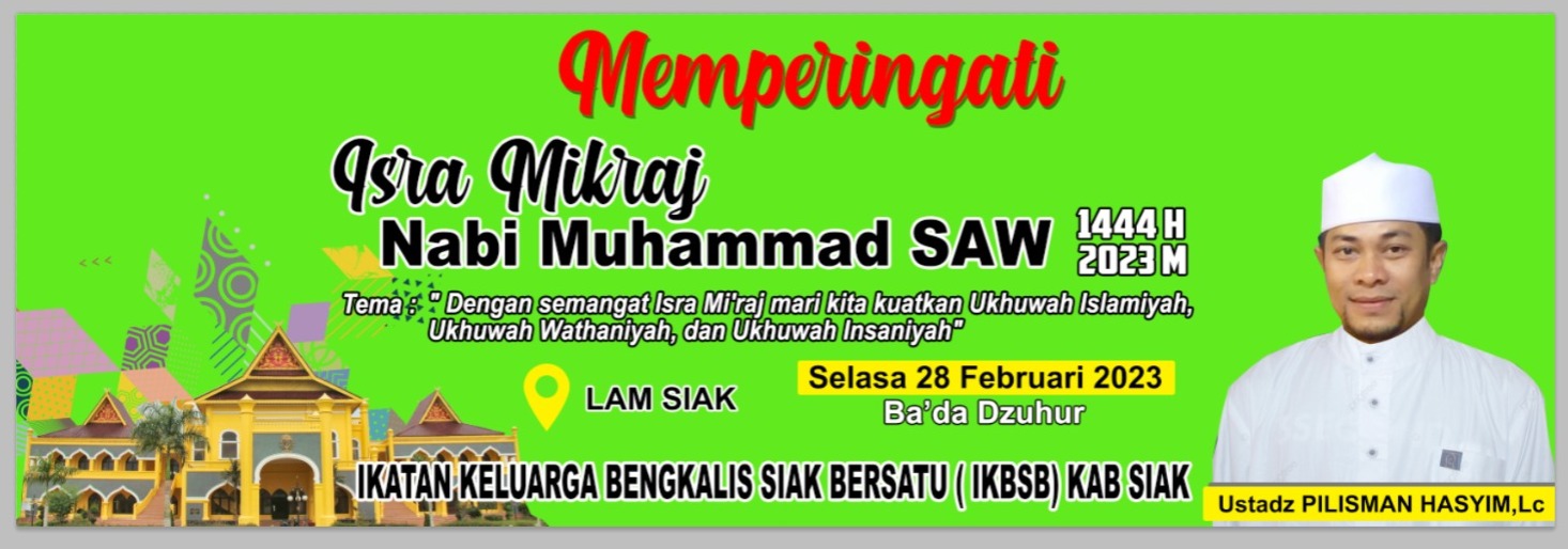 SIAK, PUBLIKNEWS.COM – Ikatan Keluarga Bengkalis Siak Bersatu (IKBSB) akan menggelar acara peringatan Isra’ Mikraj Nabi Muhammad SAW dan menyambut datangnya tamu Agung Bulan Suci Ramadhan 1444 hijriyah. Sesuai rencana acara akan digelar di Aula Gedung LAMR Siak, Selasa (28/2/2023) siang sekitar pukul 13.00 WIB dan mendatangkan penceramah Ustad Pilisman Hasyim, LC dari Bengkalis.
