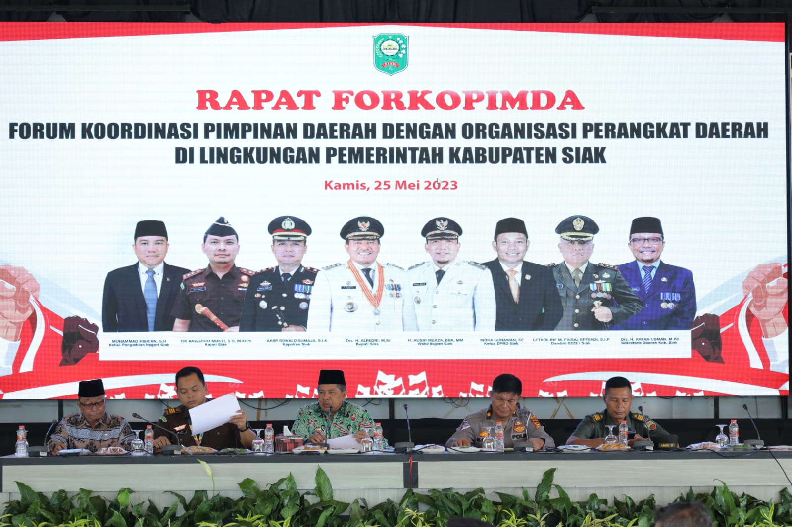 Pada Rapat Forkopimda di Balairung Datuk Empat Suku, pada hari Kamis (25/5/2023), Bupati Siak Alfedri menyampaikan kepada masyarakat agar tetap waspada terhadap terjadinya kebakaran hutan.