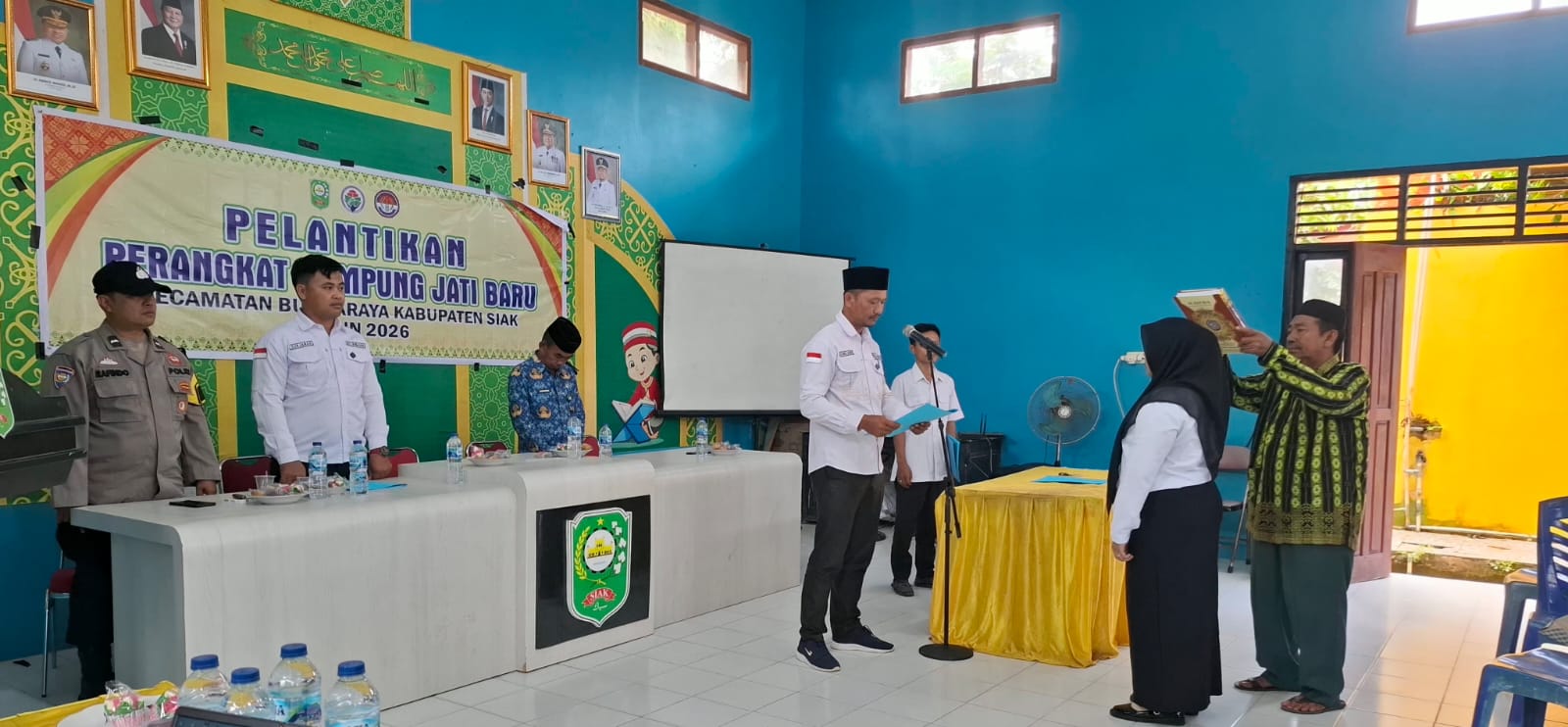 SIAK, PUBLIKNEWS.COM – Penghulu Kampng Jatibaru, Kecamatana Bungaraya, Kabupaten Siak, Riau melantik Sofia Marezqi sebagai Juru Tulis III bagian Kesejahteraan Rakyat, Rabu (18/2/2026) pagi di aula Kampung Jatibaru.