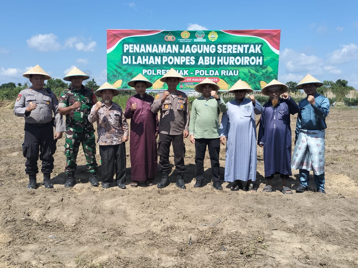 SIAK, PUBLIKNEWS.COM – Langkah nyata menuju swasembada pangan nasional terus digalakkan. Kali ini, sinergi apik antara Polsek Tualang, unsur pimpinan kecamatan (Upika), dan Pondok Pesantren Abu Huroiroh membuahkan aksi konkret berupa penanaman jagung di lahan seluas 2 hektar di Kampung Perawang Barat, Rabu (6/8/2025).