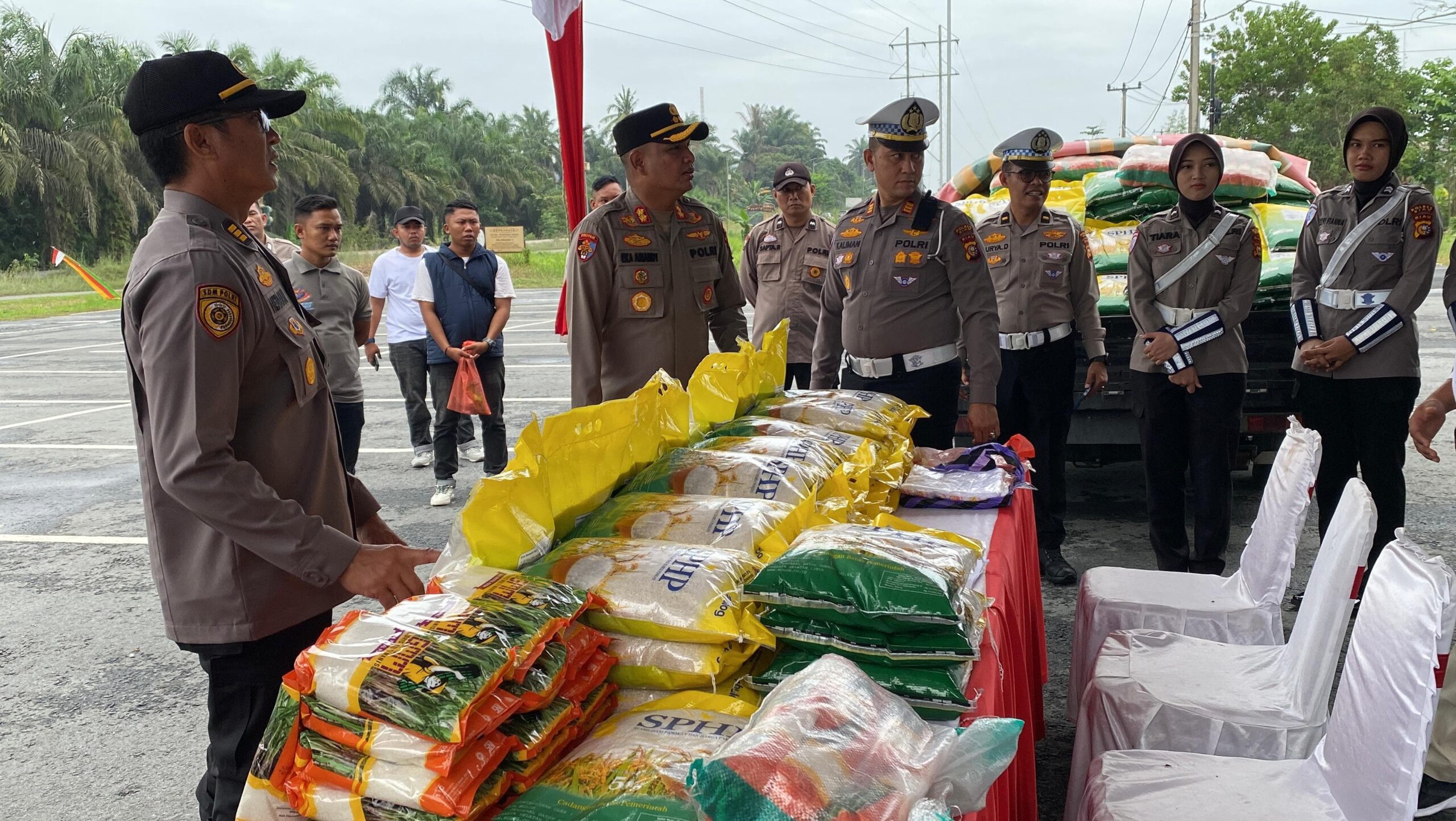 Kapolres Siak, AKBP Eka Ariandy Putra, S.H., S.I.K., M.Si., yang hadir langsung di lokasi, menyampaikan bahwa program ini merupakan bentuk kepedulian Polri dan Bulog kepada masyarakat.
