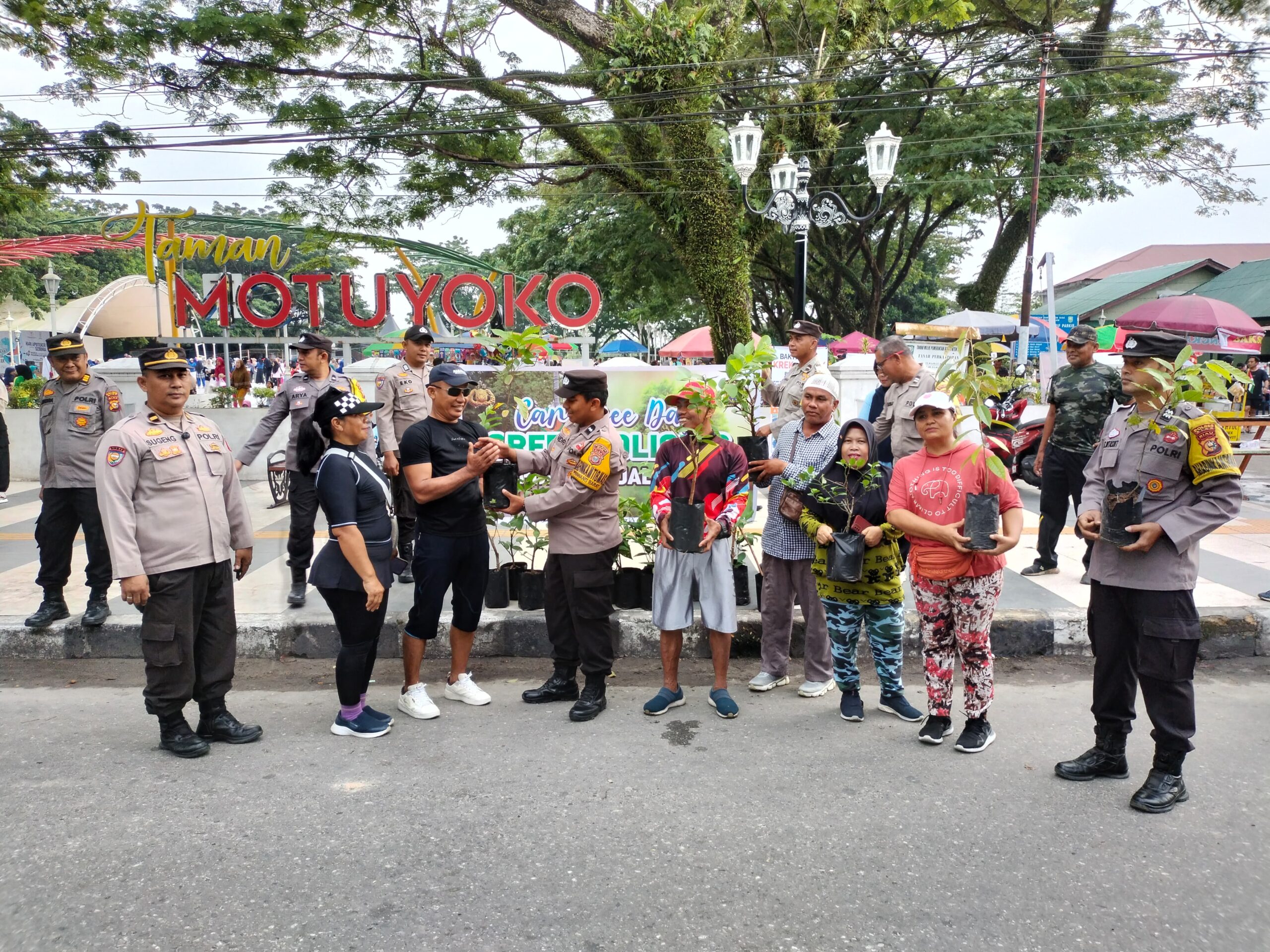 SIAK, PUBLIKNEWS.COM – Suasana Car Free Day (CFD) di Taman Motuyoko, Minggu (28/9/2025) pagi terasa berbeda. Selain berolahraga, warga juga mendapat hadiah spesial dari Polsek Tualang berupa bibit pohon gratis.