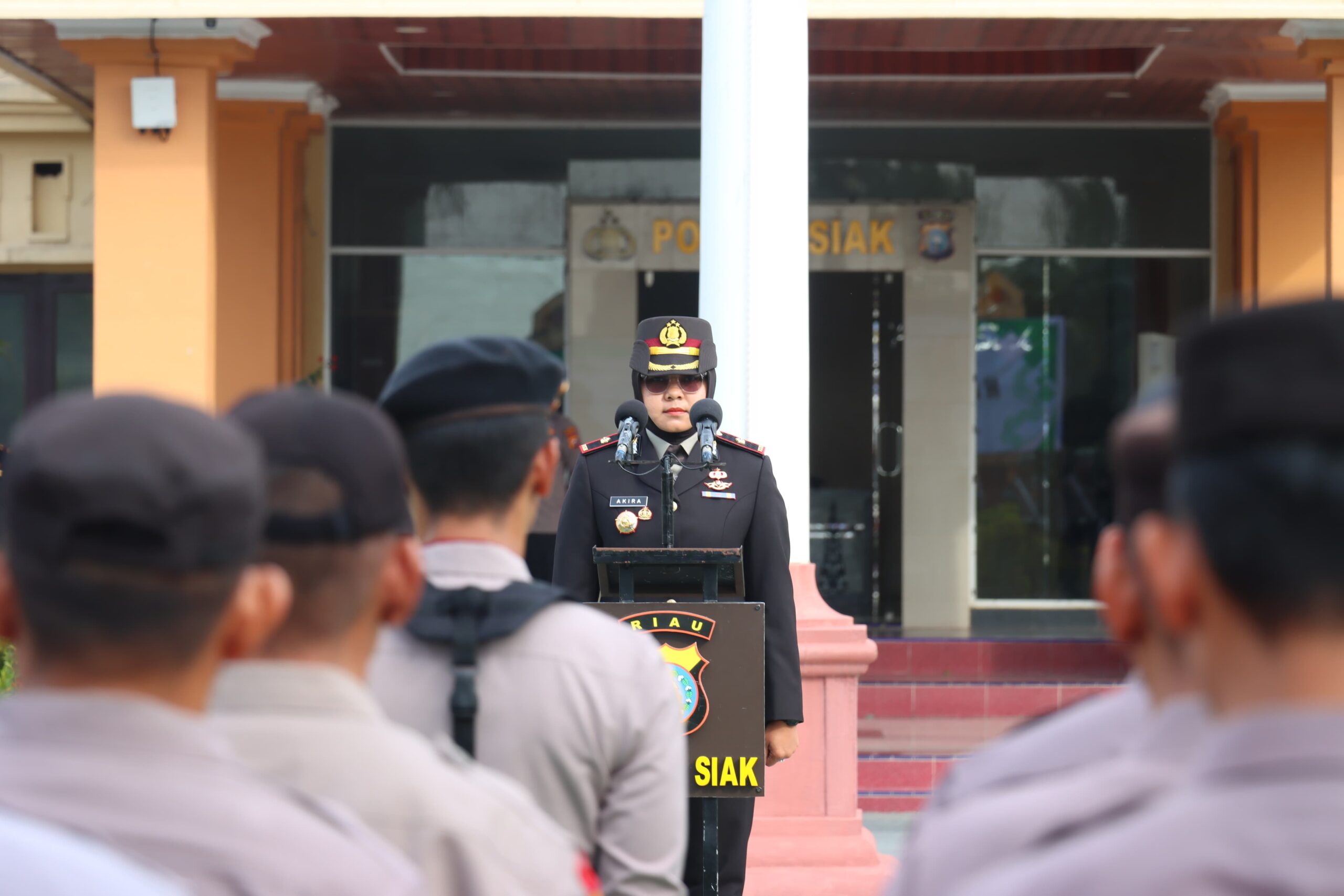 Wakapolres Siak, Kompol Ceria Akira, S.I.K., M.M., bertindak sebagai Inspektur Upacara. Adapun Kasatsamapta Polres Siak, AKP Alfajri, S.H., dipercaya menjadi Perwira Upacara, sedangkan Ipda Dody Frianto Sitorus, S.H. memimpin jalannya barisan sebagai Komandan Upacara.