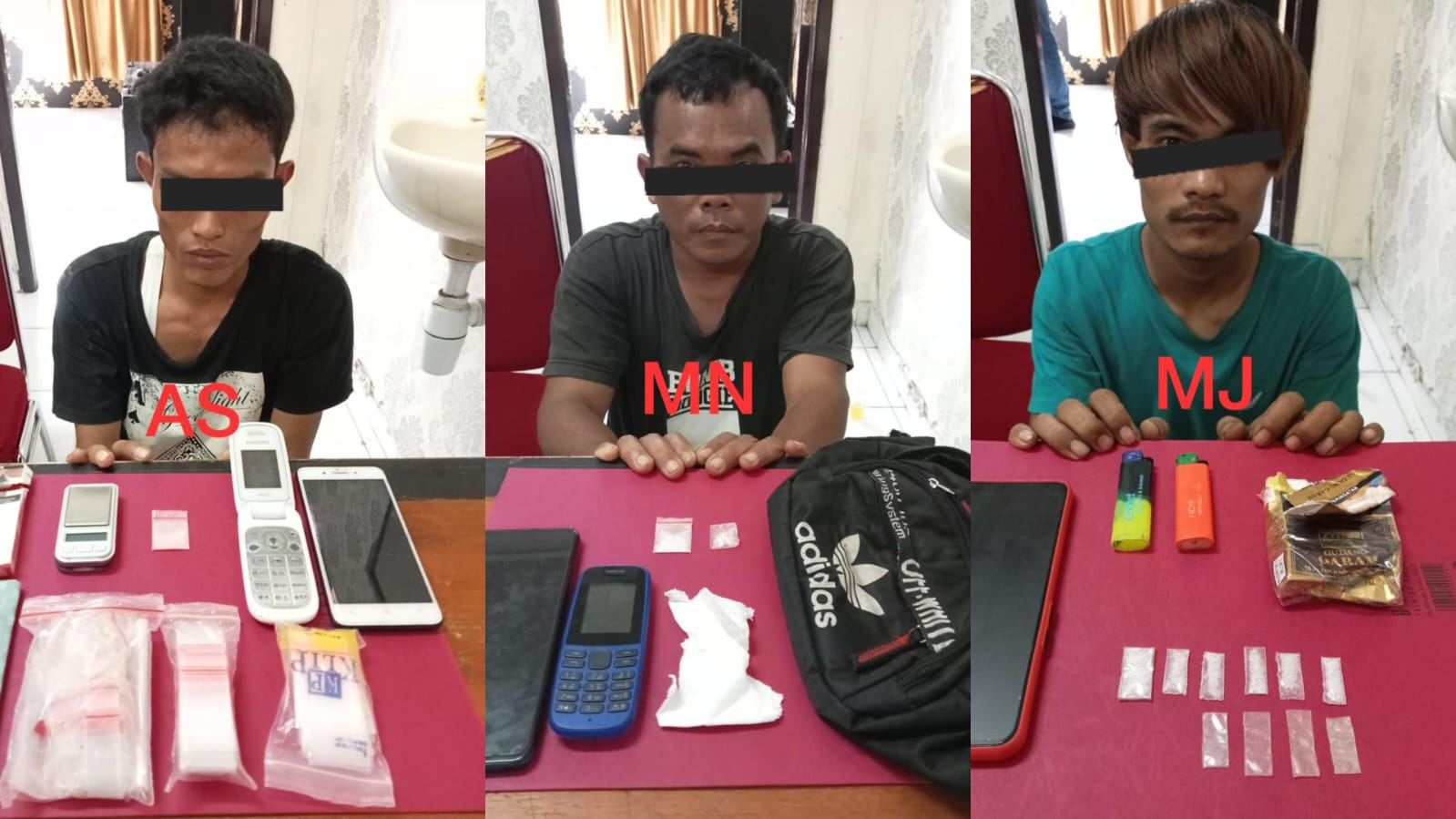 Pelaku MJ (25), MN (45) dan AS (29) diamankan Satres narkoba Polres Siak bersama barang bukti paket diduga narkotika jenis Sabu ditangan MJ seberat 1,17 gram, MN 0,63 gram dan AS 0,38 gram.