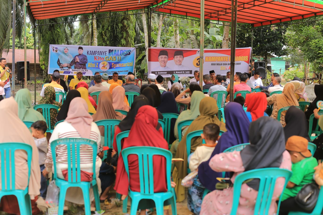 Dalam orasinya, Dr.Afni mengajak masyarakat untuk memilih Syamsuar sebagai Gubernur Riau dan memilih nomor urut 2 sebagai Bupati Siak.