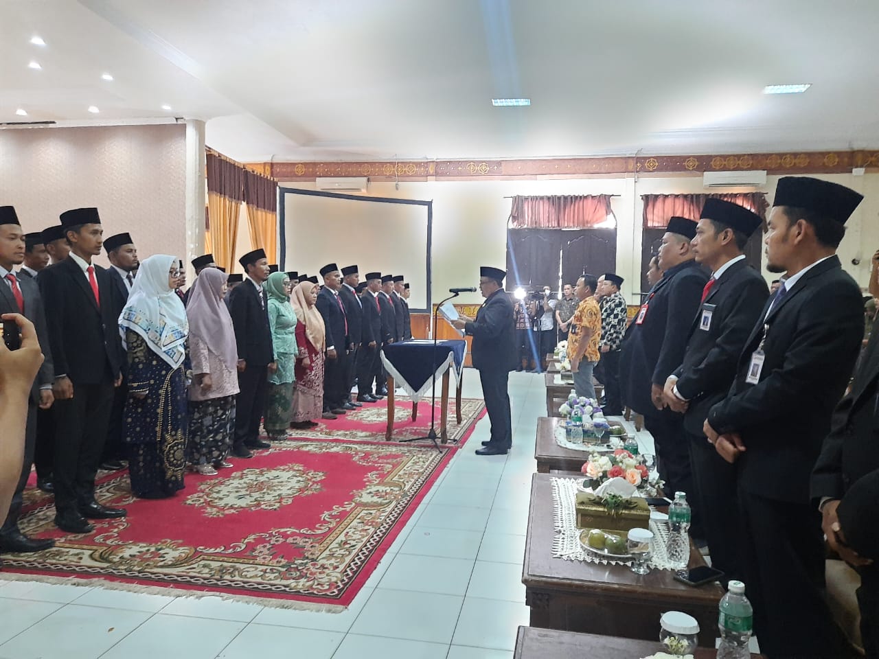Kegiatan tersebut dihadiri Bupati Siak Husni Merza, Ketua Bawaslu Kabupaten Siak M Royani, Camat Siak Andi Putra, Pimpinan OPD di lingkungan Kabupaten Siak, serta 42 anggota panitia Pengawas Pemilihan Umum tahun 2024 dari masing-masing kecamatan yang ikut dilantik.