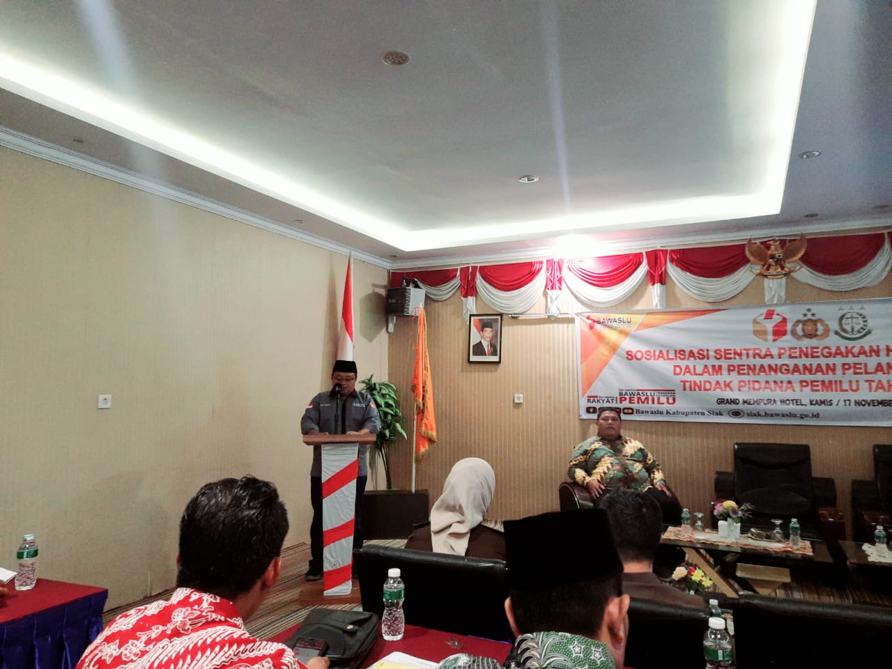 Kegiatan ini dihadiri dan dibuka langsung oleh Ketua Bawaslu Siak Moh.Royani serta dihadiri Narasumber dari anggota Gakkumdu Kejari Siak dan Polres Siak dan peserta sosialisasi Ketua Apdesi di wilayah Kabupaten Siak.