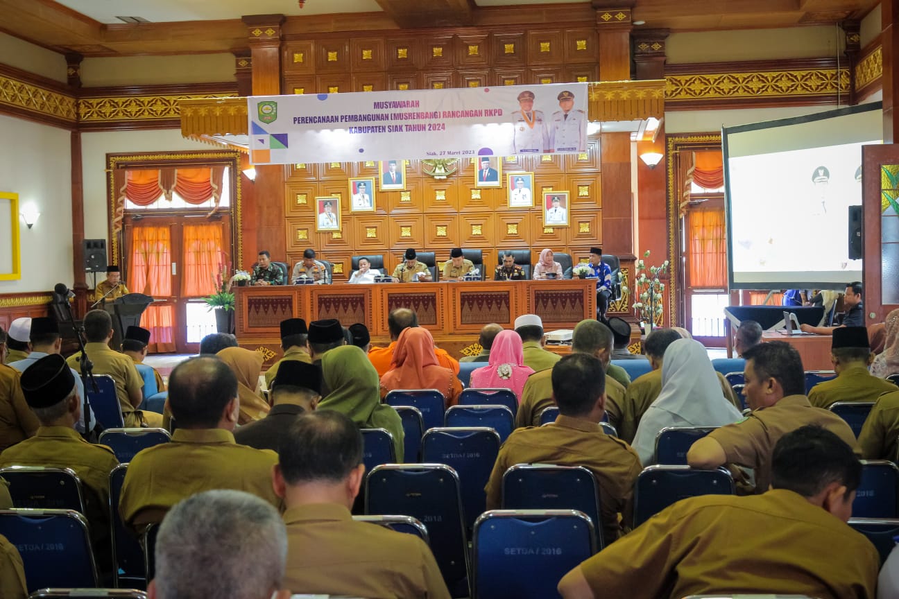 SIAK, PUBLIKNEWS.COM – Bupati Siak Alfedri membuka secara resmi kegiatan Musyawarah Rancangan Pembangunan (Musrenbang) Rancangan RKPD Kabupaten Siak Tahun 2024. Berbagai program pembangunan yang akan diselenggarakan pada tahun anggaran 2024 mendatang, tertuang di dalam RKPD akan disesuaikan dengan kemampuan anggaran yang tersedia. Rapat ini digelar di Ruang Rapat Raja Indra Pahlawan kantor Bupati Siak, Senin, (27/3/2023).